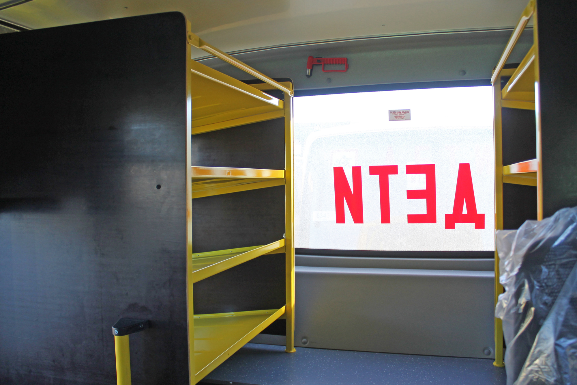 Дополнительная ступенька поможет забраться в автобус даже самым маленьким пассажирам. В салоне каждой машины размещены кнопки экстренной связи с водителем, а рабочее место водителя оборудовано наружной и внутренней громкоговорящей установками. В задней части салона установлены стеллажи для ранцев.